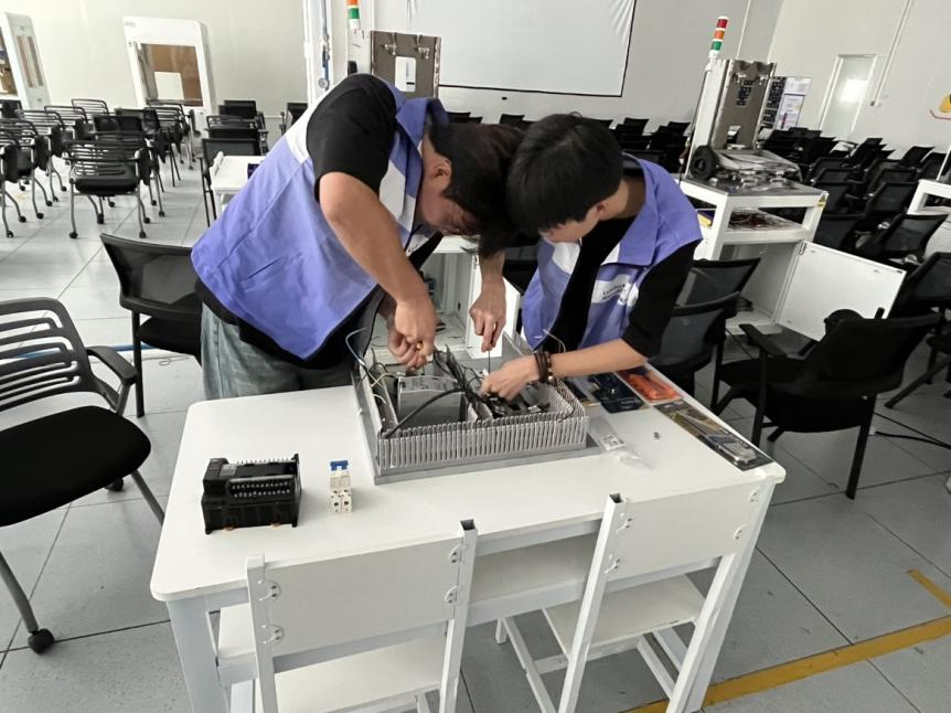 在随后的实操环节中,学生们以小组为单位,亲手进行电控柜的拆解与组装。从元器件的定位安装到线路的连接整理,从工具的正确使用到团队之间的密切配合,同学们在动手过程中不断巩固理论知识、提升操作技能。