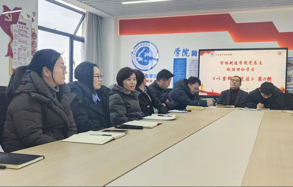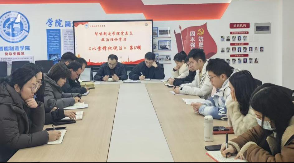 为持续深化全面从严治党,加强党风廉政建设和师德师风建设,12月16日下午,智能制造学院党总支在创新楼215会议室组织召开了专题政治理论学习会。本次学习由学院党总支书记马瑾瑞主持,智能制造学院全体教职工参加。
