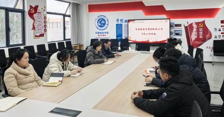 为进一步推进学院班级管理工作,12月16日下午,智能制造学院在创新楼215召开12月份班主任工作例会,本次会议由党总支书记马瑾瑞主持,24、25级班主任参会。