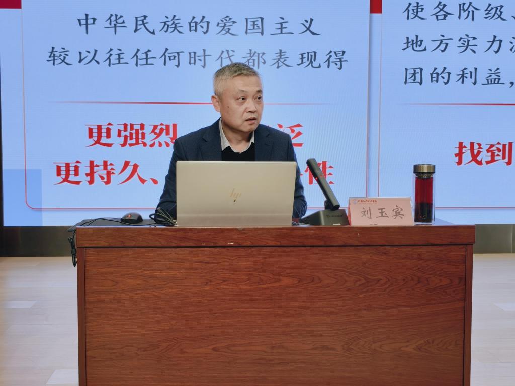 刘玉宾校长以“纪念抗战胜利,坚定民族信念”为主题,以“中日历史上共爆发了几次大规模战争”这个问题为切入点,紧扣“铭记历史,正义必胜”“民族壮举,浓墨重彩”“精神丰碑,永不磨灭”“珍爱和平,开创未来”四个篇章展开讲授。