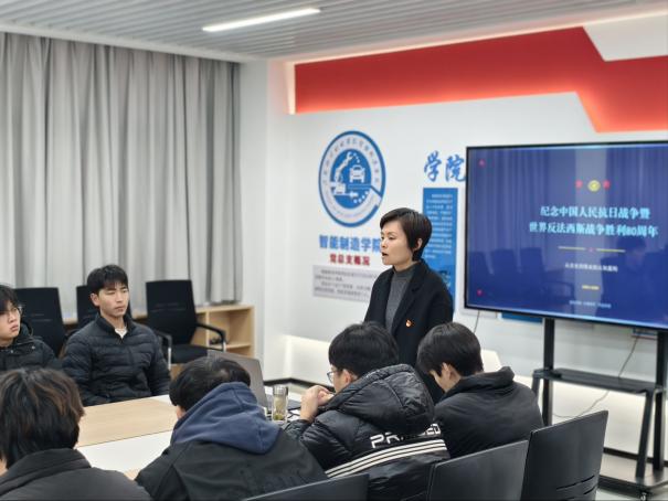为深入学习贯彻党的二十大精神,弘扬伟大抗战精神,引导新生坚定理想信念、筑牢思想根基,智能制造学院党总支书记马瑾瑞为学院2025级新生讲授了一堂深刻而生动的专题党课。