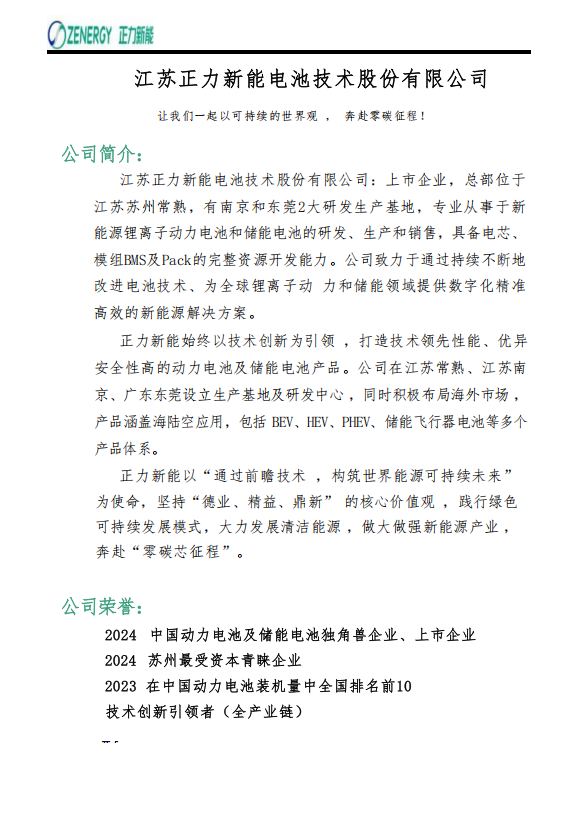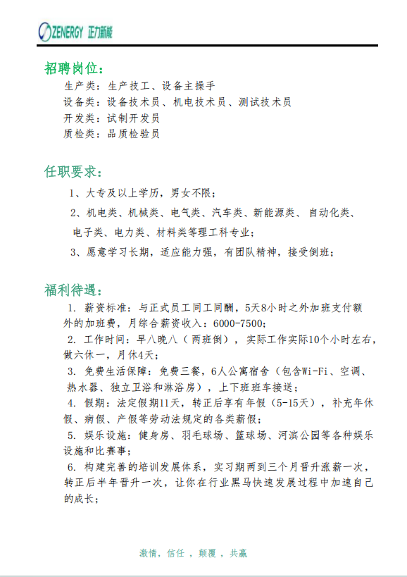 招聘信息:江苏正力新能电池汽车技术股份有限公司